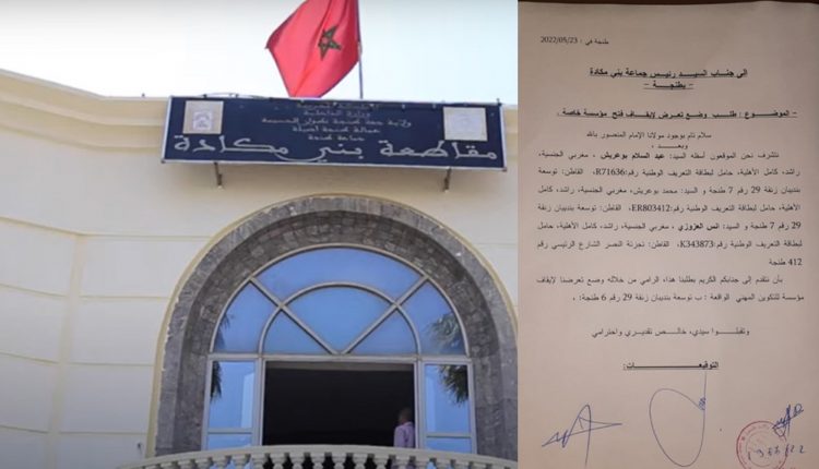 و توصل الموقع بنسخة من شكاية وجهها السكان منذ بدء الأشغال بالعمارة بغرض تحويلها إلى مدرسة، بجميع الإجراءات، بدءا بإخبار عون السلطة “الشيخ” وقائد الملحقة الإدارية 23 قصد تدخل فوري ،بإنجاز محضر في الموضوع وإحالته على الجهة المختصة بطنجة، لكن حسب المشتكين فقد ثم التآمر ضد الساكنة، من طرف أشخاص خلال توقيع رئيس مقاطعة بني مكادة على الترخيص، وبالتالي منحت الموافقة، التي هي عبارة عن موافقة مبدئية لإنشاء مؤسسة تعليمية خصوصية.