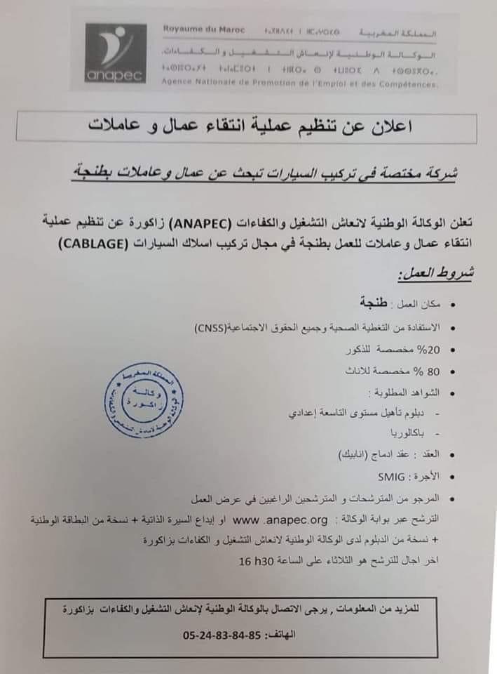 إعلان عمل بزاكورة لشركة “كابلاج” بطنجة يخلق الجدل