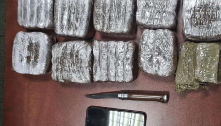 المعني بالأمر جرى توقيفه على مستوى شارع المقاومة،حيث أسفرت عملية الضبط و التفتيش المنجزة في هذه القضية عن حجز لديه داخل حقيبة على ما مجموعه 4 كيلوغرام و830غرام من مخدر الشيرا و سلاح ابيض و هاتف نقال .