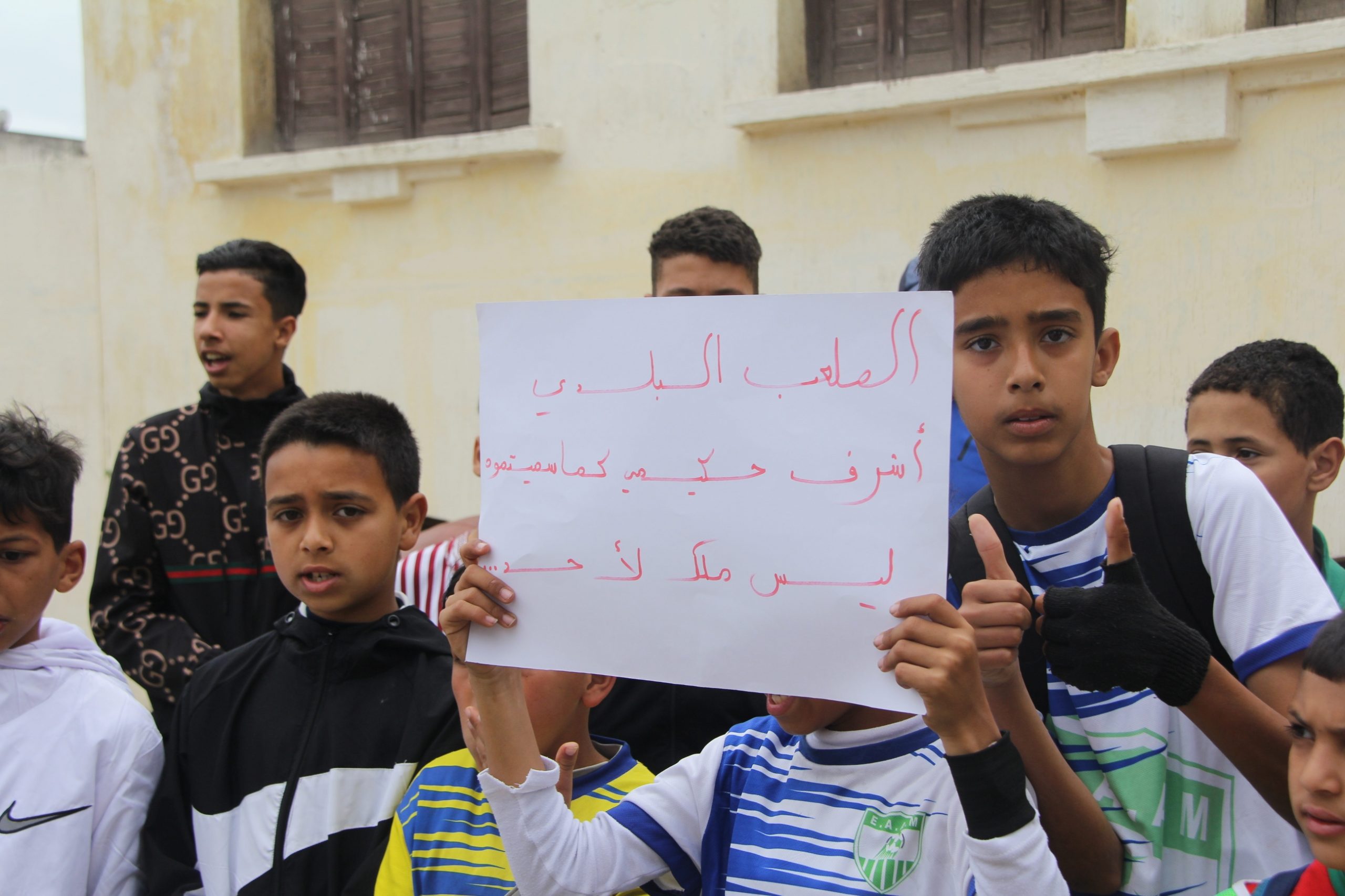 الإقصاء يخرج أطفال النوادي الرياضية وذويهم للاحتجاج ضد جماعة القصر الكبير -صور-