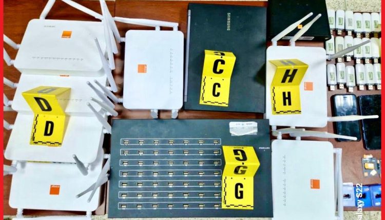 كما أسفرت عملية التفتيش المنجزة بداخل منزل المشتبه فيه عن حجز 471 شريحة هاتفية وطنية و58 بطاقة تعبئة، فضلا عن حاسوب محمول ووحدة مركزية للكمبيوتر و52 جهازا إلكترونيا ودعامات معلوماتية تستعمل في هذا النشاط الإجرامي.