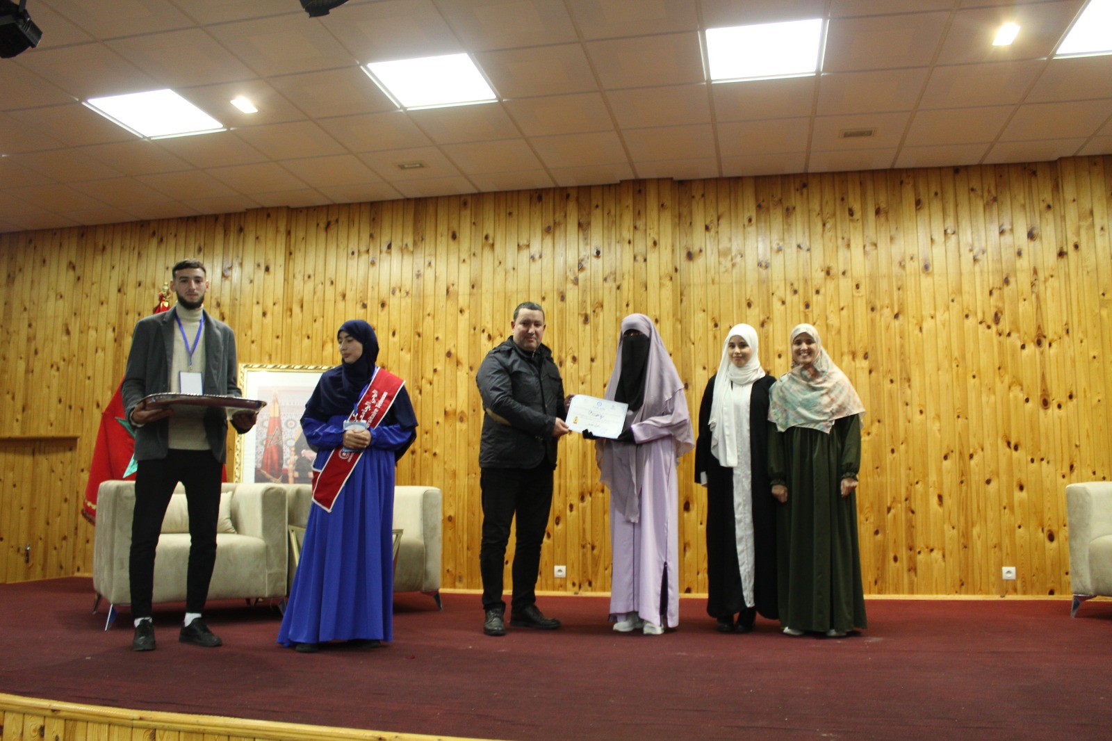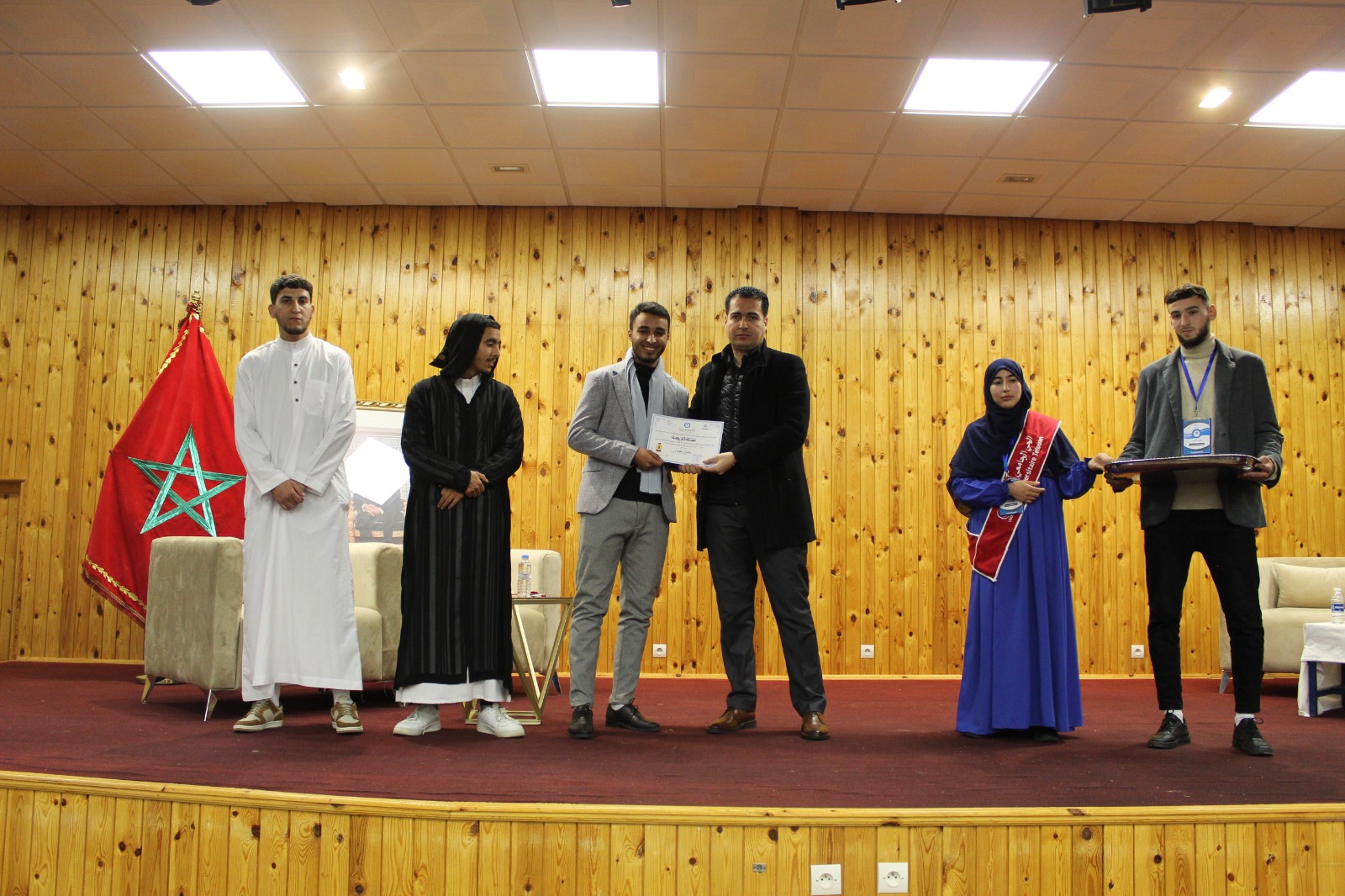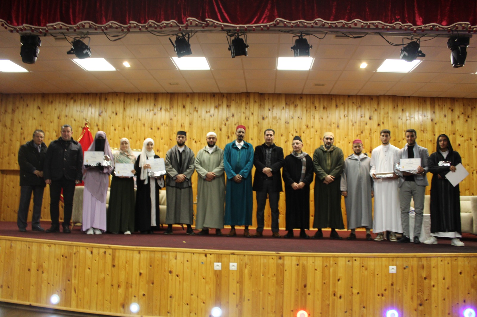 وفي ختام هذه الأمسية الرمضانية، تقدم السيد مدير الحي الجامعي إلى المنصة مرفوقا بضيوفه مشجّعا الطالبات والطلبة القرّاء بتخصيص شهادات تقديرية وجوائز تحفيزية مقدمة من ادارة الحي الجامعي.