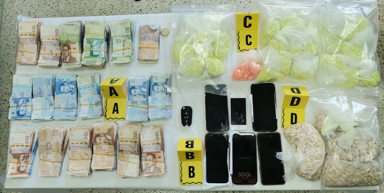 ومواصلة لإجراءات البحث في هذه القضية، جرى توقيف المشتبه فيه الخامس مباشرة بعد وصوله على متن قطار قادم من مدينة مراكش، وبحوزته مبلغ مالي يقدر بحوالي 160 ألف درهم، يشتبه في كونه كان موجها لاقتناء هذه الشحنة من أقراص الإكستازي المخدرة.