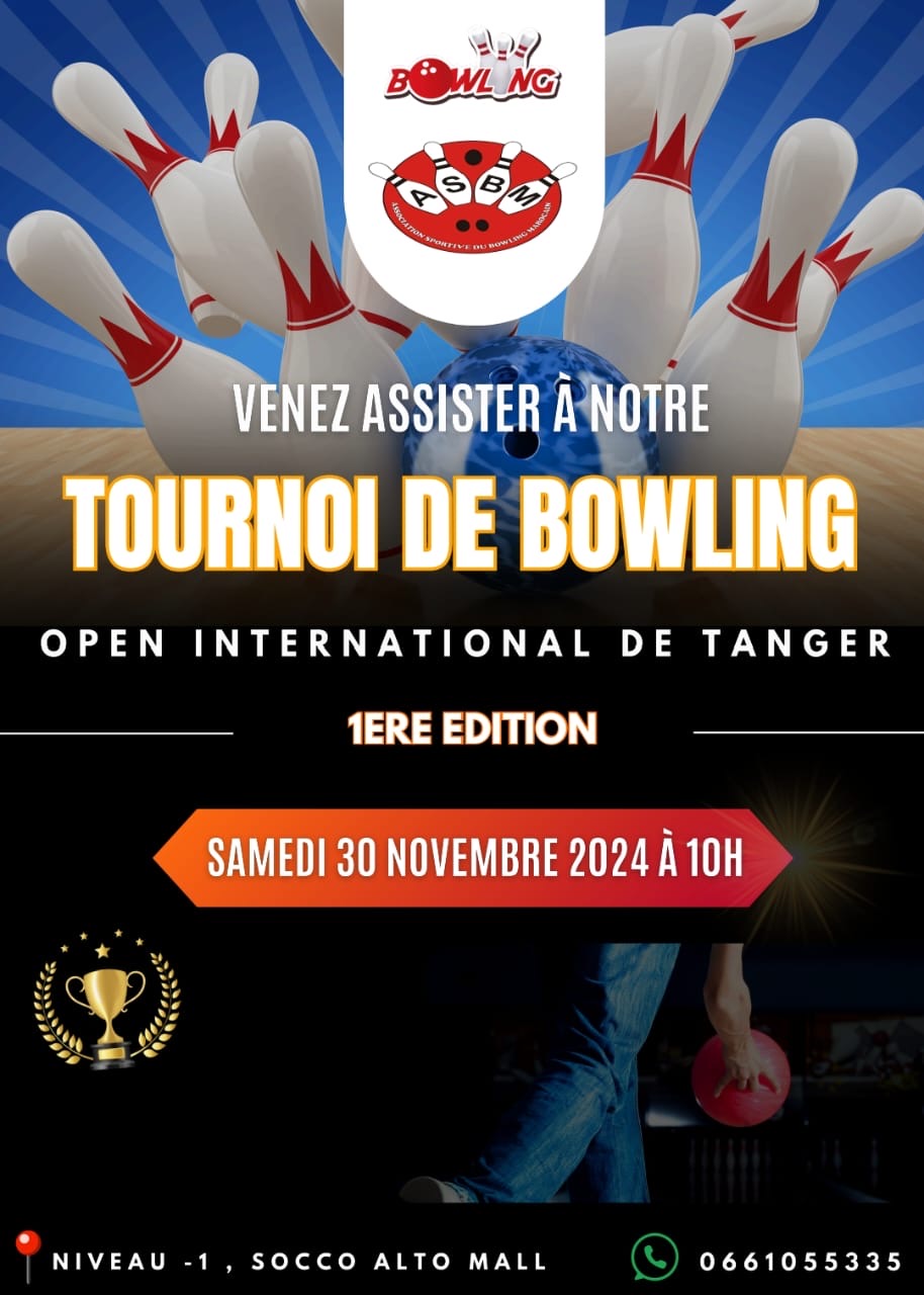 تستعد مدينة طنجة لاحتضان النسخة الأولى من “بطولة طنجة الدولية المفتوحة للبولينج” يوم السبت 30 نونبر بصالة بولينج طنجة Fun Park Soco Alto. تنظم الحدث الجمعية الرياضية للبولينج المغربي (ASBM) فرع طنجة، بشراكة مع إدارة الصالة، وبمبادرة من اللاعب الدولي عبد المغيث أغريس.
