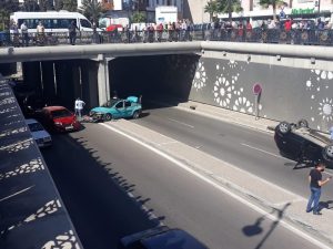 اصطدام تلاث عربات.. حادثة سير خطيرة بنفق مركز الحليب بطنجة -صور-