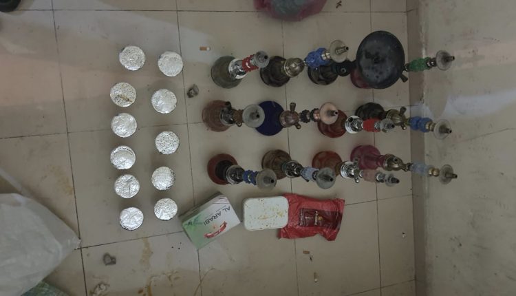 العملية الامنية لمصالح الدائرة الامنية مكنت من حجز 12 نرجيلة و 11 راس محشو بمادة المعسل المهربة و حوالي 3 كيلوغرامات من مخدر المعسل المهرب .