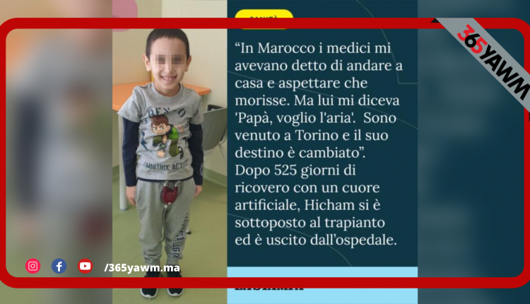 هشام، البالغ من العمر 7 سنوات، طفل مكث في مستشفى “ريدجينا مارغريتا”، بمدينة تورينو، لمدة سنة و5 أشهر و10 أيام تربطه بالحياة فقط أجهزة طبية. حيث كان متصلا بآلة تسمح له بالبقاء متمسكا بالحياة بأمل الحصول على قلب جديد. وهو ما تحقق في مساء يوم 26 يناير من هذا العام.