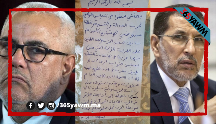 وجه الأمين العام السابق لحزب العدالة والتنمية رسالة إلى حزب إخوانه في حزب المصباح، وتحديدا إلى الأمين العام لحزب المصباح، يدعوه فيه إلى تقديم استقالته.