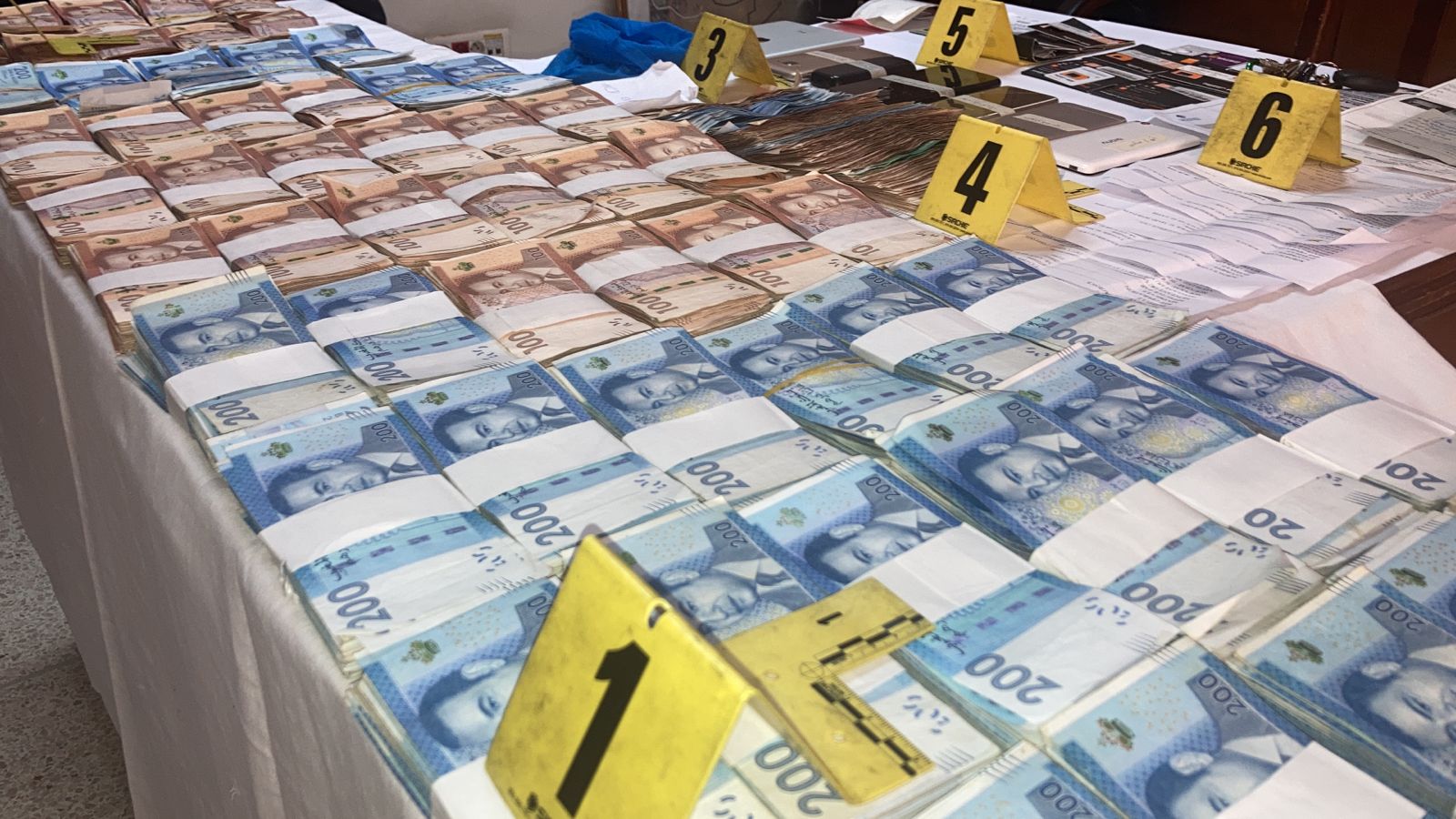 وقد أسفرت إجراءات التفتيش المنجزة في إطار هذه القضية عن حجز واسترجاع مبالغ مالية مهمة يشتبه في كونها من عائدات عملية السطو، فضلا عن ضبط أسلحة بيضاء من مختلف الأحجام وأكياس كبيرة من سنابل الكيف، وكذا السيارة التي تم تسخيرها لغرض ارتكاب هذه الأفعال الإجرامية.